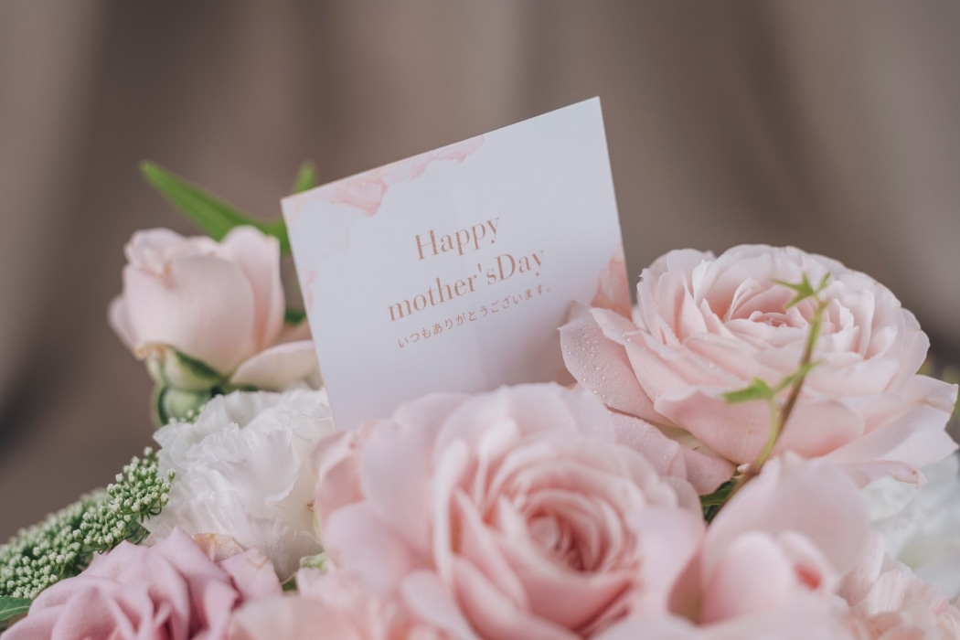淡いピンクのカーネーションやバラを主役にした可愛らしく上品なデザイン。バスケットに入れてお届けするので、花瓶が無くても飾れます。母の日のカード付きで、お母様に感謝の気持ちをお伝えするのにぴったり。