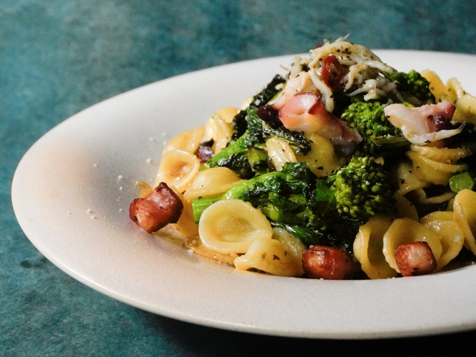 日本の浜でとれた肉厚の近海タコとしらす干をオリーブオイルでまとめています。 唐辛子の辛味とガーリックやバジルの風味がアクセント。