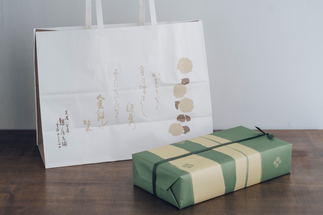 緑屋老舗の栗金飩は、厳選した地元の契約農家から届く新鮮な山栗を短時間で蒸し上げることにより、栗の粒が残るホクホクとした食感で、ほんのりとした控えめな甘みで雑味のない上品な口当たりが特徴で、栗の食感や香りを損なわないよう、こだわりの「浅炊き」で製造されています。