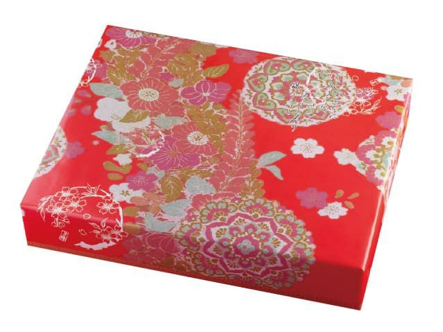 - 内容量:桃(食せる海老せんべいの器付、上技物あられ亀、和三盆梅あられ、大桜あられ、丹波黒豆あられ、明太子醤油あられ、円満あられ、九条ねぎ西京味噌あられ)×2箱・葵(食せる海老せんべいの器付、上技物あられ木の葉、きざみ海苔あられ、和三盆宇治抹茶あられ、円満あられ、小桜あられ、柚子胡椒あられ、梅ざらめあられ)×2箱・紅(食せる海老せんべいの器付、上技物あられ亀(西京みそ)、大桜あられ、七味あられ、海苔あられ、円満あられ、二色あられ、和三盆柚子あられ)×4箱