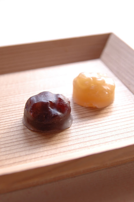 丹波大納言小豆と白小豆をそれぞれ寒天で一口サイズに固め、甘さを控えて仕上げました。