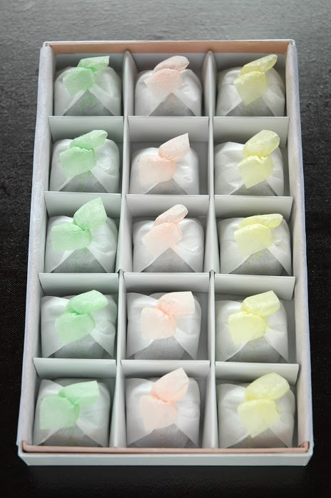 この「京らくほく」は、丹波大納言小豆の粒を生かしたまま炊きあげ、甘さを控えめに仕上げました。赤・黄・緑の三色の包み紙でかわいらしく包みましたので、大切な方への贈り物におすすめです。