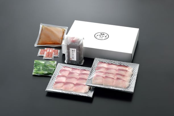 - 内容量:ぶり 200g×2、鍋だし 330ml、味付ぽん酢 300ml、葱煮 80g、もみじおろし5g×4