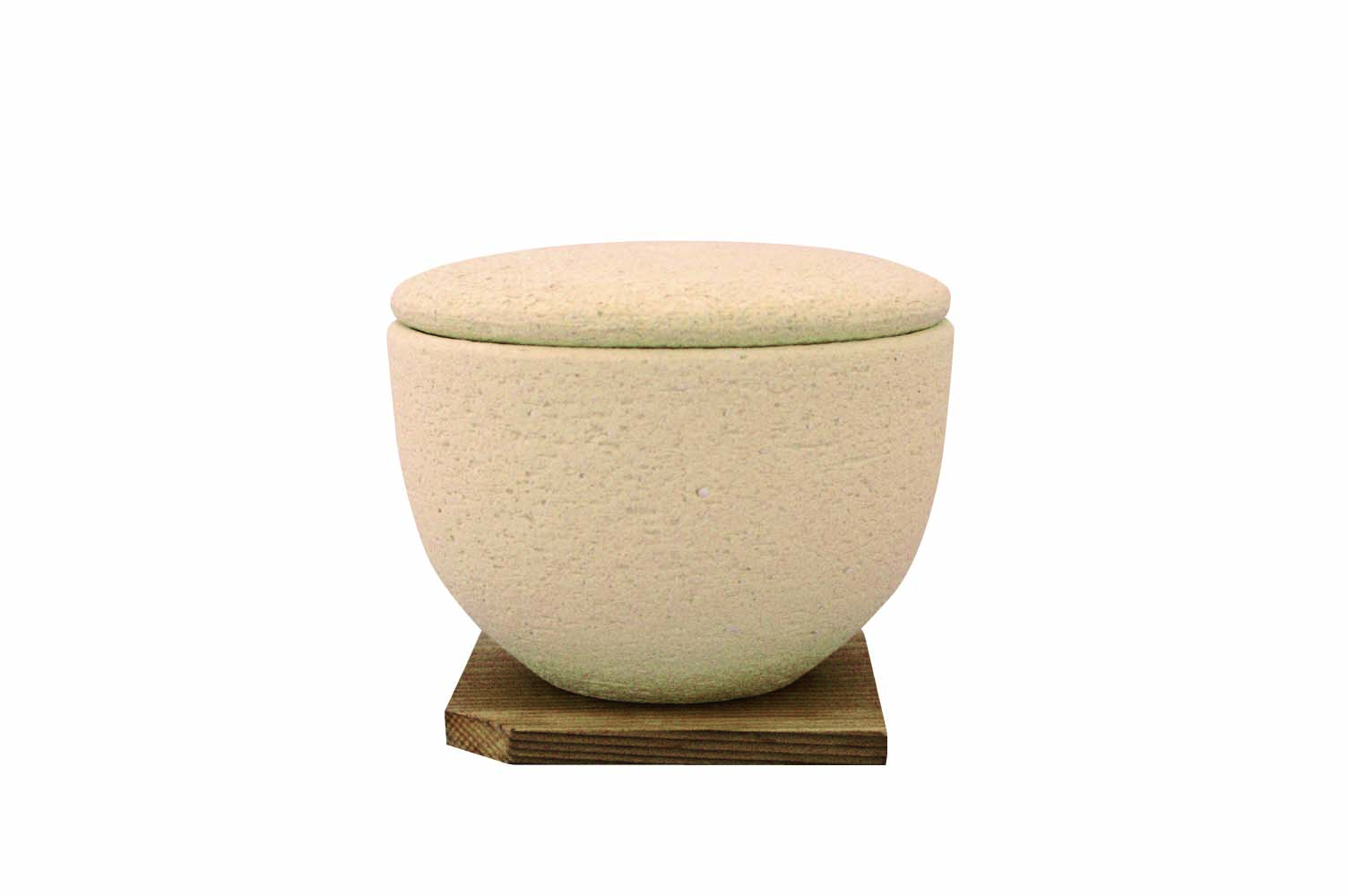 木のおひつのように呼吸する電子レンジ専用の伊賀焼のおひつです。気孔の多い伊賀の粗土が水を含み、熱蒸気化することで、ご飯の保存・温めなおしに最適です。付属の陶製すのこを使えば、蒸し調理にも使えます。
