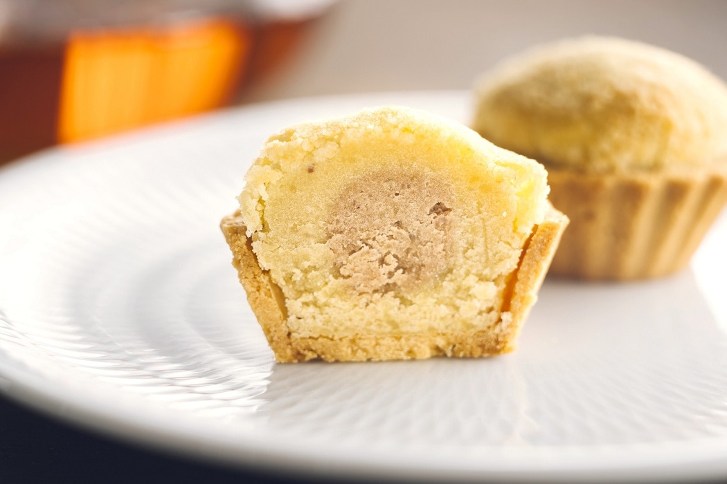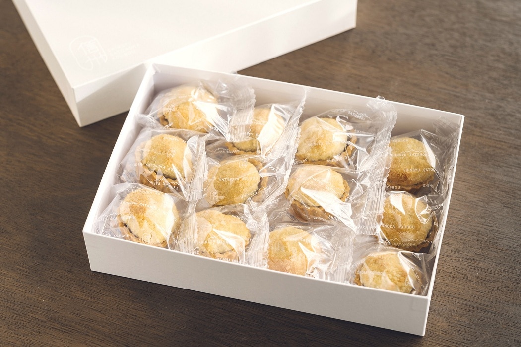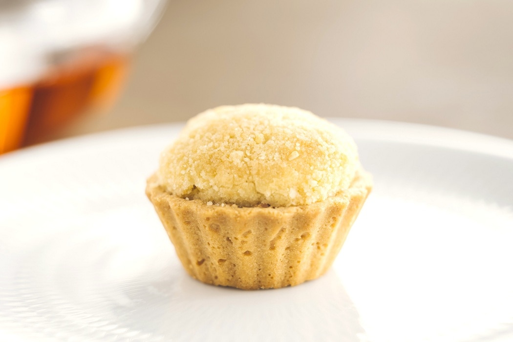 さっくりとしたパイ生地に2層になったモンブランペーストをのせ、サブレ生地をまぶして焼き上げました。ころんとした可愛らしい一口サイズも魅力です。
