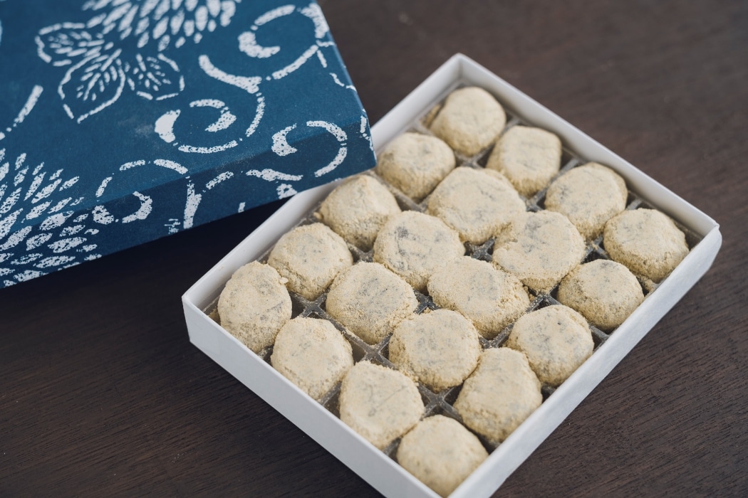 昔も今も、変わらず万人に愛されるお餅は、可愛らしいひとくちサイズ。柔らかくとろけるような餅の中に、程よく粒感の残るあんが包まれ、きな粉の香ばしさがやさしい甘さを引き立てています。