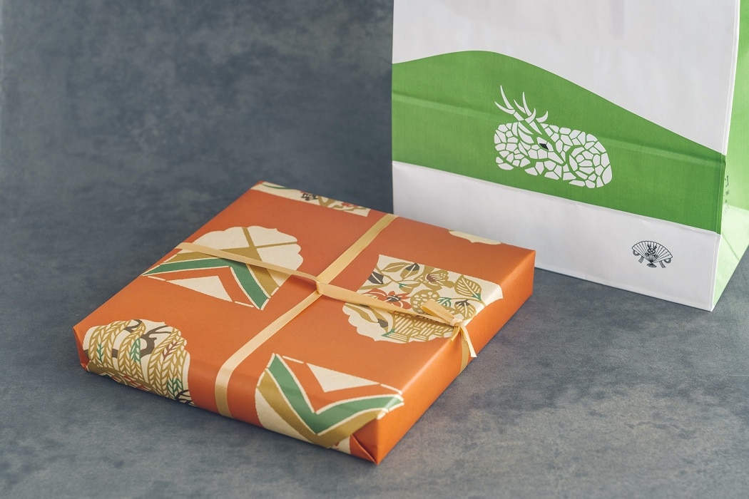 モダンクラシックな箱も包み紙も目に留まり、話がはずむこと間違いなし。